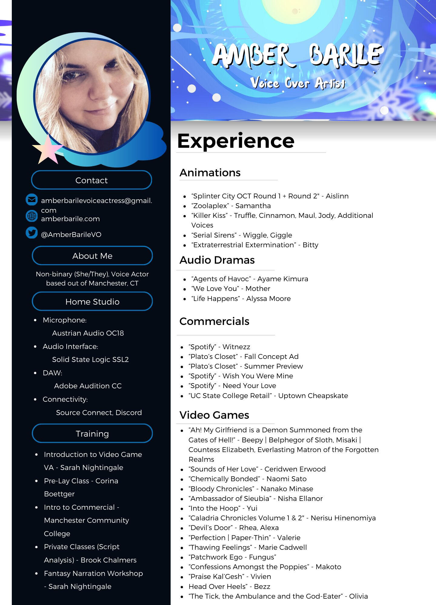 Thank you for stopping by, feel free to reach out using the form below or emailing:amberbarilevoiceactress (@) gmail.com